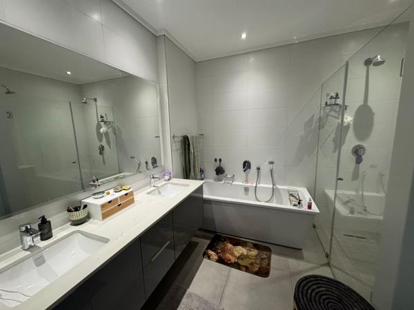 - The master bedroom has a built-in vanity, ample cupboards, air-con, and a full en-suite bathroom with twin basins, a double shower, and a toilet.