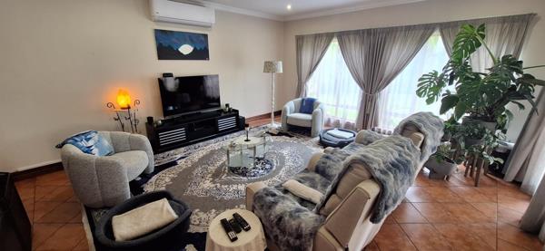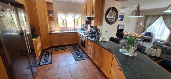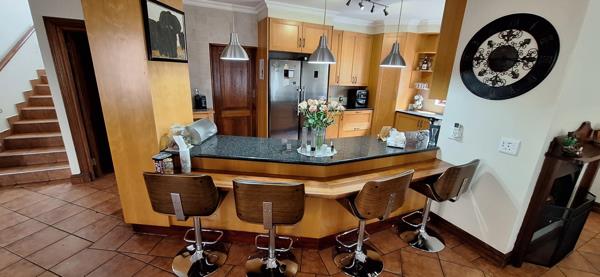 Magnificent townhouse at the Old Kent Gate in Midstream. It has a separate lounge with aircon and dining room downstairs. There is a built-in braai on the patio. The kitchen has space for a double door fridge and has a gas hob. The bar chairs shown are not included but you can dine on the kitchen counter. The scullery has space for three under counter appliances. There is a guest restroom downstairs with a basin and toilet and small storeroom under the stairs. Upstairs are the 3 bedrooms with ample cupboard space. The main bedroom has a full en suite bathroom and leads out onto the balcony. There is also a second full bathroom. The second bedroom also leads to the balcony. The garden at the front and back of the house is in beautiful condition. No large dogs will be allowed as pets and no cats. The complex is within walking distance of parks, a pool and play area. Children can safely access the Midstream schools through the estate by walking or cycling.