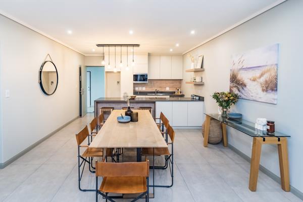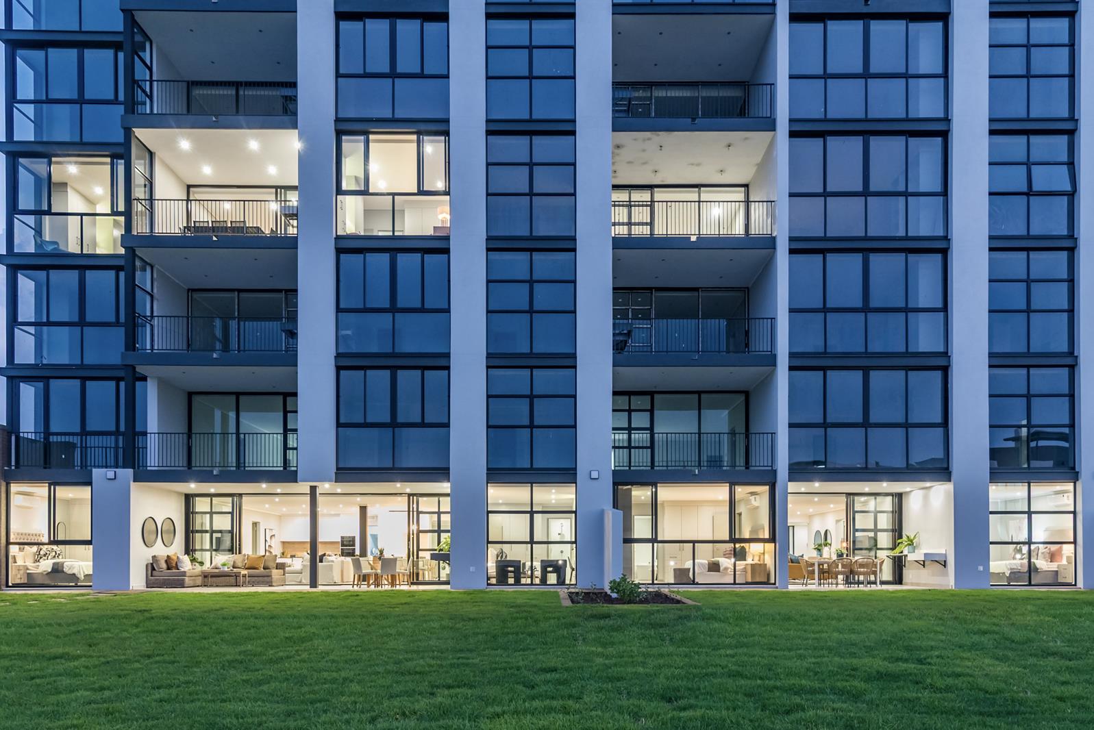 The bright open-plan lounge and dining area flows seamlessly into a sleek, modern kitchen with quality finishes. Sliding doors open directly onto expansive communal lawns, offering a sense of outdoor living without the maintenance. Please note: there is no private patio.