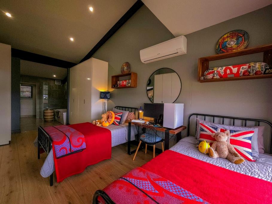 - Retreat-like master bedroom featuring large windows, air conditioning, abundant cupboard space, and a full en-suite bathroom.