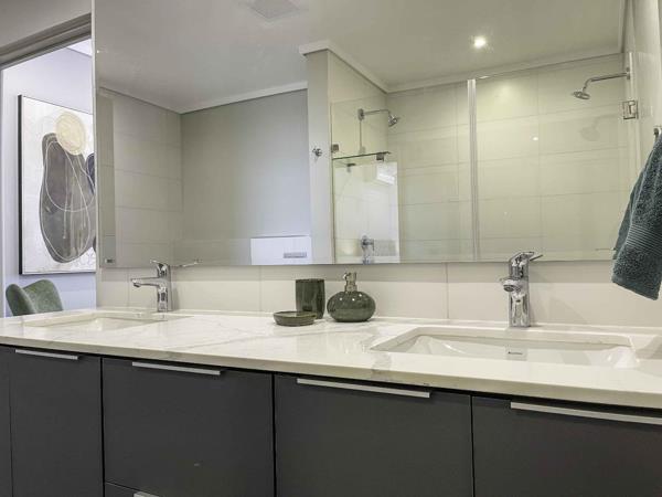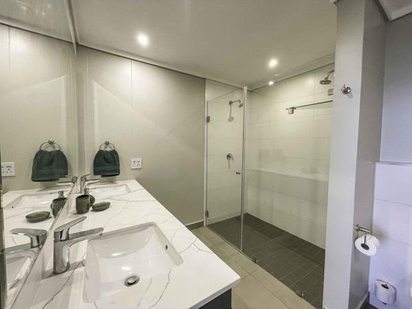 - The master bedroom has a built-in vanity, ample cupboards, air-con, and a full en-suite bathroom with twin basins, a double shower, and a toilet.