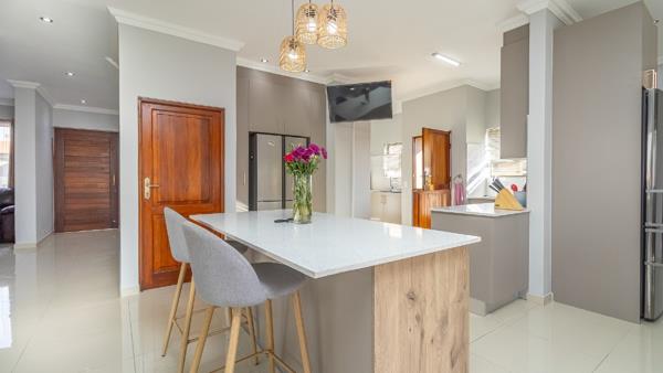 A 3 Bedroom house available in sought after Midstream.  Walking distance from the clubhouse Play area and Estate Pool. There are 2 Garages, Open plan Kitchen, Living and Dining area and guest toilet. Upstairs are the bedrooms with PJ Lounge.