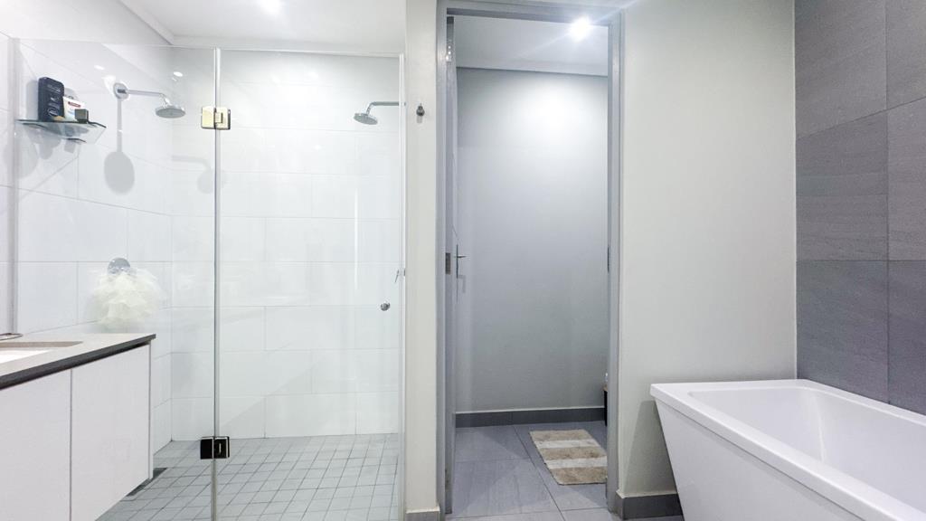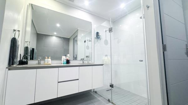 The main bedroom is a peaceful retreat, complete with a full en-suite bathroom, ample cupboard space, and plenty of natural light. A second bedroom is complemented by a modern bathroom fitted with a shower, toilet, and basin.
