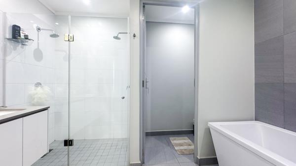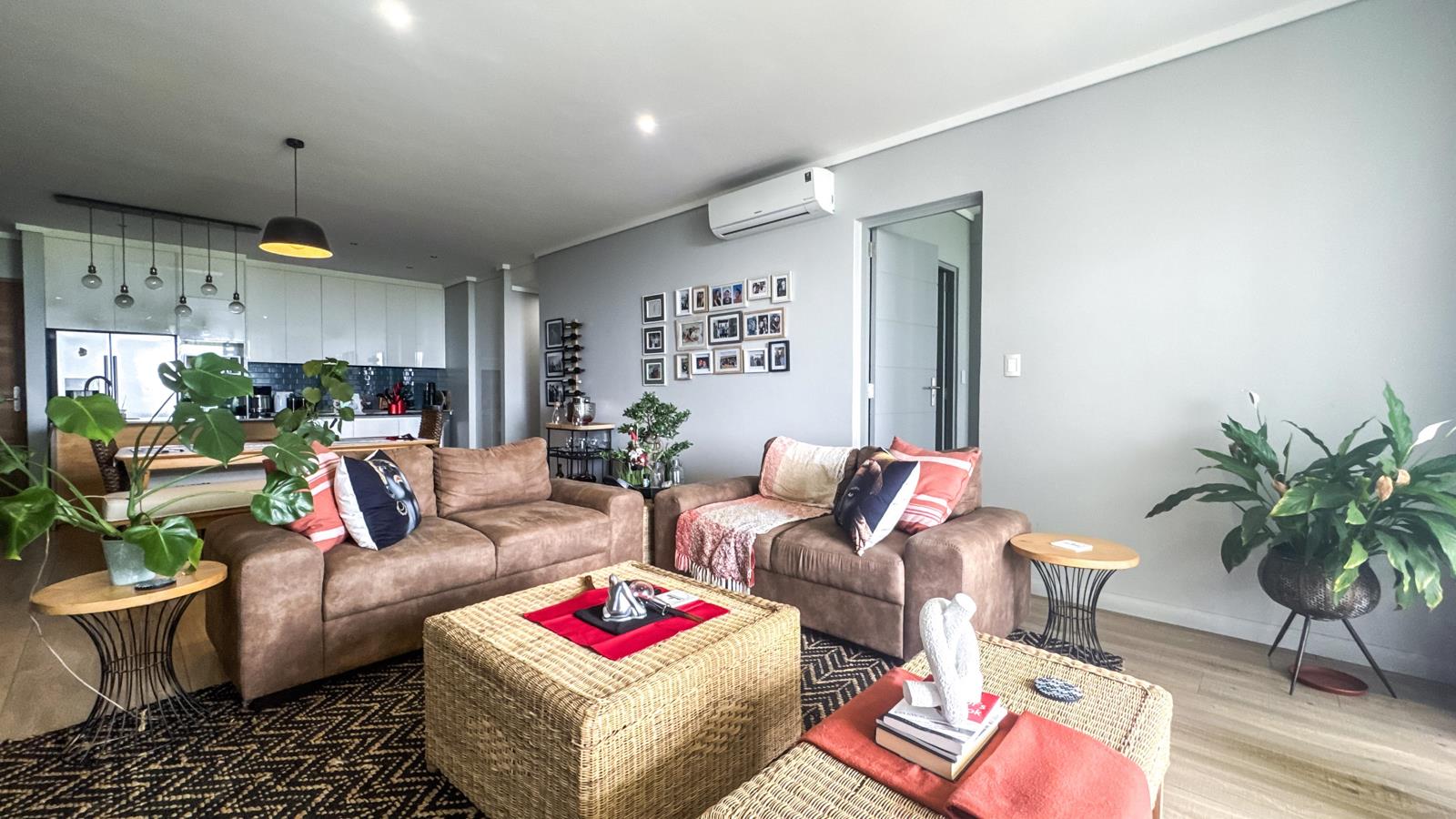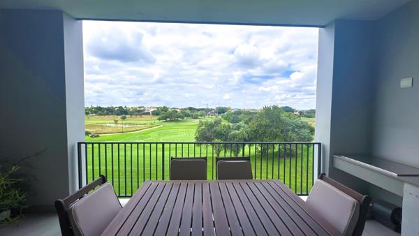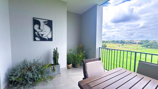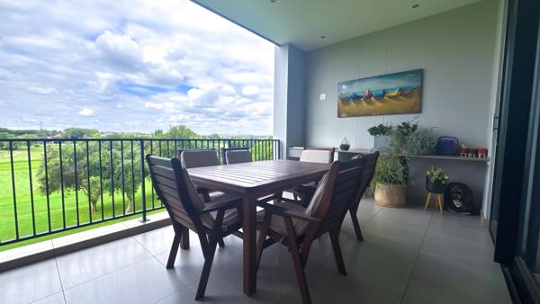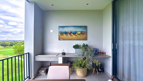 The open-plan living space extends effortlessly onto a private balcony, featuring a built-in gas braaiideal for easy, relaxed entertaining while enjoying tranquil golf course views.