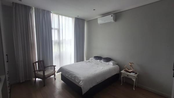 The spacious living area opens onto a private balcony complete with a built-in gas braai, offering tranquil views of the Golf Caurce and surrounding nature perfect for relaxing or entertaining guests.