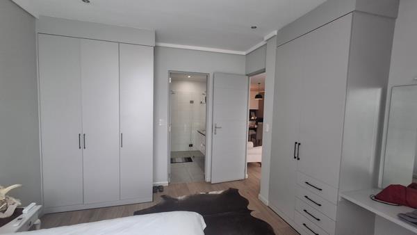 The main bedroom features a full en-suite bathroom, abundant cupboard space, and plenty of natural sunlight. The second bedroom is served by a modern bathroom with a shower, toilet, and basin.