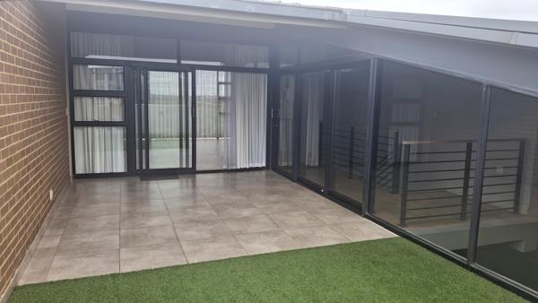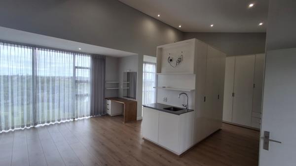 The large covered balcony, complete with a built-in gas braai, is the ideal spot for relaxing sundowners or hosting friends while taking in the tranquil golf course views.