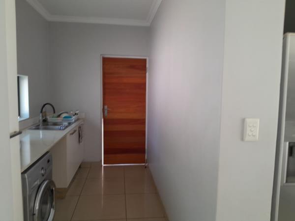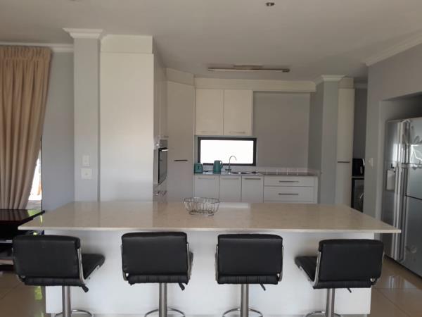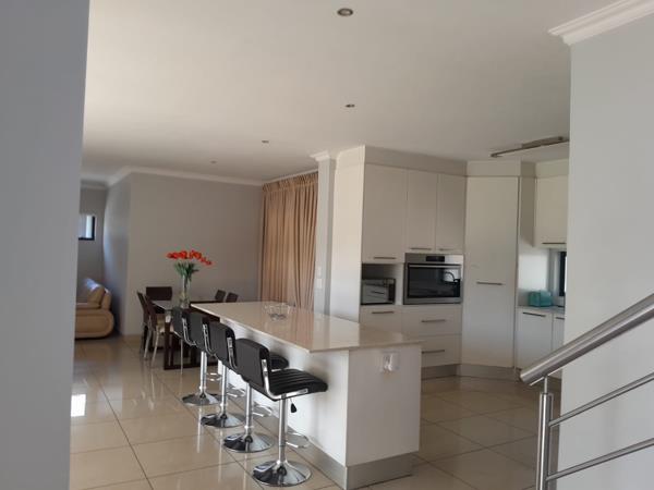 The home features three well-sized bedrooms, each opening onto a shared balcony, along with two modern bathrooms, with the main bedroom offering a private en-suite. The living areas are light-filled and flow seamlessly to the outdoor entertainment space, where youll find a built-in braai overlooking a generous gardenperfect for hosting or relaxing on weekends.