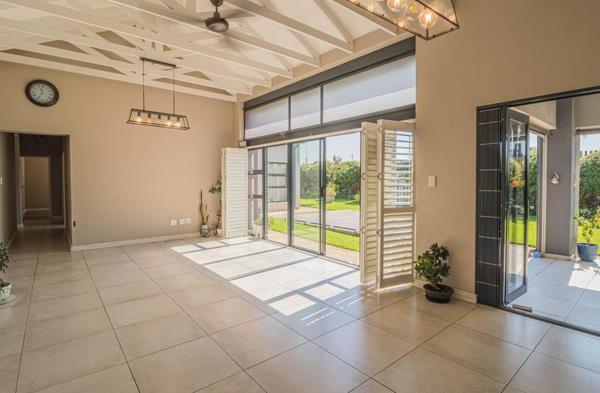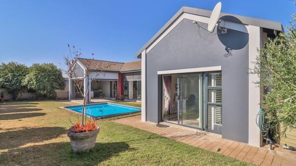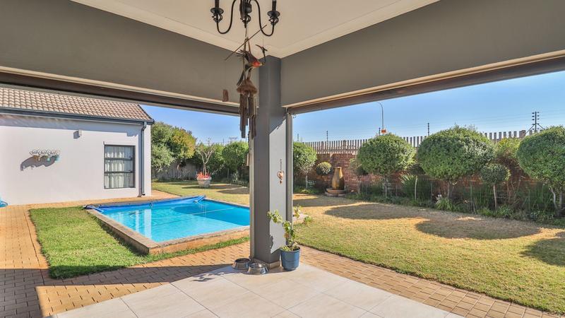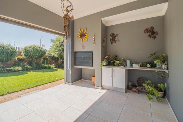 The enclosed patio with a built-in braai extends your living space outdoors, perfect for long summer afternoons or cozy winter gatherings. Just beyond, a sparkling swimming pool with cover invites laughter, leisure, and weekend fun.