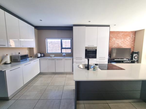 It has a lot to offer: An inviting entrance, open plan lounge, dining room & beautiful modern kitchen with top class finishes, a breakfast nook & a separate scullery, 4 sunny bedrooms with main en-suite & a walk-in closet, 3 bathrooms, double garage, en-suite staff quarter and more!