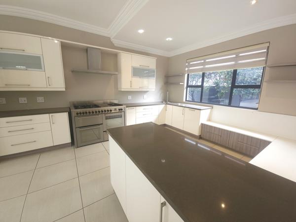 It has an inviting entrance hall, lounge, family room, dining room, stylish study, guest toilet, 4 bedrooms with spacious en-suite bathrooms The main bedroom has a walk-in-closet. The kitchen is modern & spacious with a breakfast nook, pantry & scullery!!