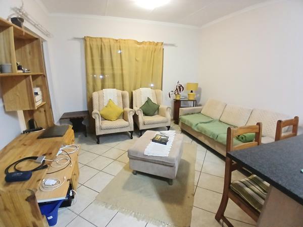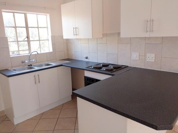 Two bedroom fully tiled ground floor unit situated in a quiet access controlled security complex, and is available as from the 1st of April 2026. Within walking distance from a shopping complex. The loungedining room area leads out onto an enclosed patio, with a built in braai, and an enclosed walled in garden. The kitchen is equipped with ample cupboard space, as well as provision for under counter appliances.