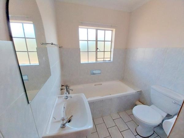 Two bedroom fully tiled ground floor unit situated in a quiet access controlled security complex. Walking distance from a shopping complex, and is available as from the 1st of May 2026 onwards. The lounge dining room area leads out onto a enclosed patio with a braai and a walled in garden. The kitchen is equipped with ample cupboard space, as well as provision for appliances.