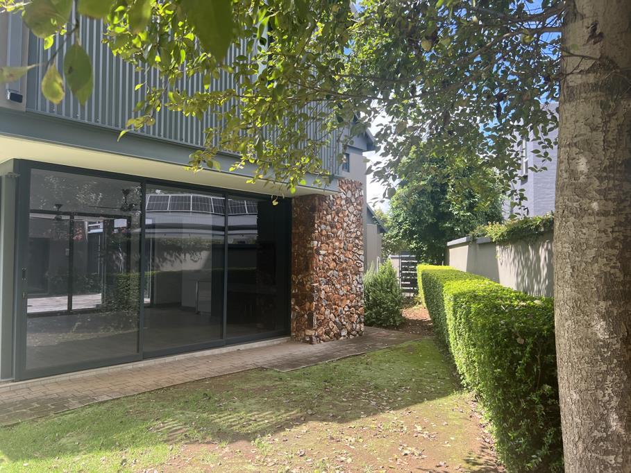 oSeamless flow through double-glazed aluminium sliding doors onto the manicured garden.