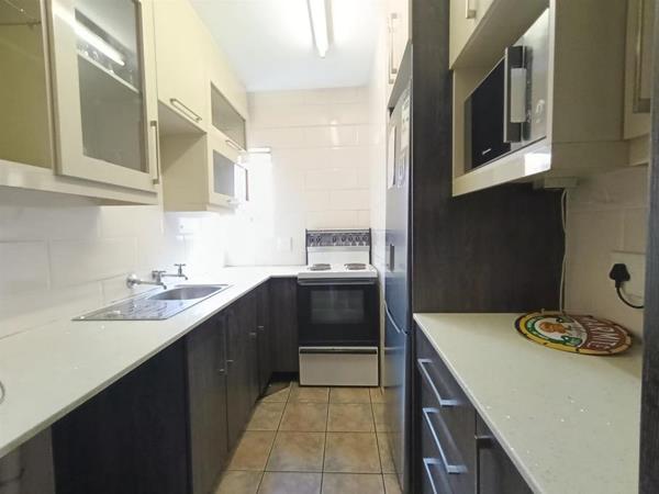 This beautiful 2 bedroom in a secure estate comes with a newly refurbished kitchen. It has an open living space that can accommodate a dining suite as well as lounge suite. It has a full bathroom. The unit comes with a private garden and lock up garage.
