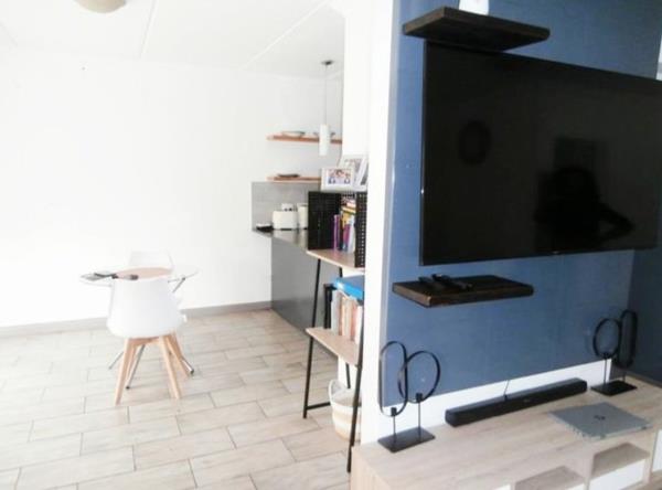This property consists of 3 bedrooms upstairs, 1 en-suite and 2 shares a bathroom then downstairs open plan kitchen with living area. and lovely garden at the back with lovely patio. The property is situated in a secured estate with 24 hours security.