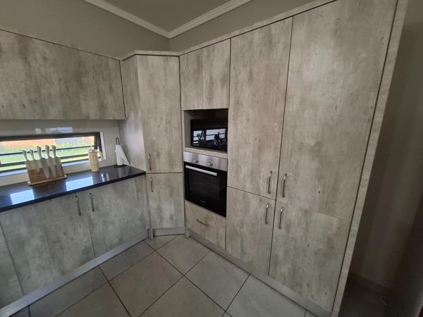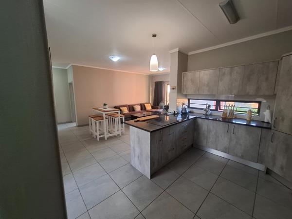 Discover modern living in this inviting 3-bedroom, 2-bathroom home available for rent in the sought-after Amberfield, Centurion. This residence offers a contemporary open-plan layout, seamlessly connecting the lounge and dining areas. The stylish kitchen is a focal point, featuring sleek concrete-look cabinetry, dark countertops, an integrated hob, oven, and microwave, complemented by a convenient pantry. Durable tiled flooring extends throughout the living spaces, ensuring a clean and cohesive aesthetic.