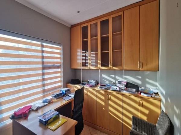 This upmarket property offers plenty of space 5 Bedroom ,3 Bathroom and half down stairs there is 3 Bathroom and 1 Bathroom 2 leaving space ,kitchen and a scallary dining room facing the sunning patio going to a lovely big swimming pool ,office , study and extra room turn it to a prayer room. 3 Garage space ,garden with vegetable plant and a fruits tree , maids cottage and 2 more storage place outside ,upstairs main Bedroom has big leaving room and walk down stairs bathroom.