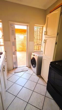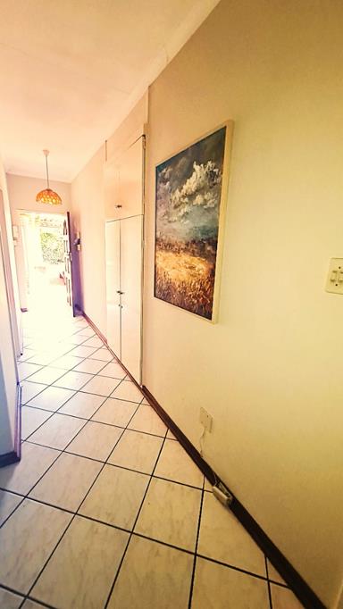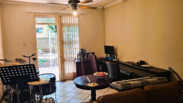 Looking for a spacious simplex with a large treed garden in a small and quiet complex - well, you found it!! This two bedroom simplex, in a complex with only 9 units, is centrally located to all major roads, and other amenities, yet nestled in a quiet area with large trees and an exceptionally large sunny garden. Spacious open plan dining room and lounge area flowing onto a large patio, partly covered with a louvre roof and double security gates for peace of mind, overlooking the garden. The kitchen has granite counter tops and space for a fridge, and 2 other appliances, with a back door that leads to a courtyard, a washing line, and direct access to the single garage. A carport is located at the front door adjacent to the garage. There is one bathroom with a basin, bath and shower in the bath with a separate toilet, centrally located to serve both rooms and guests as well. Extra storage space is available in the hallway to the living areas. All doors have security gates for your safety, and the complex has one remote controlled access gate and an electric fence all around. Prepaid electricity is in place for your convenience.