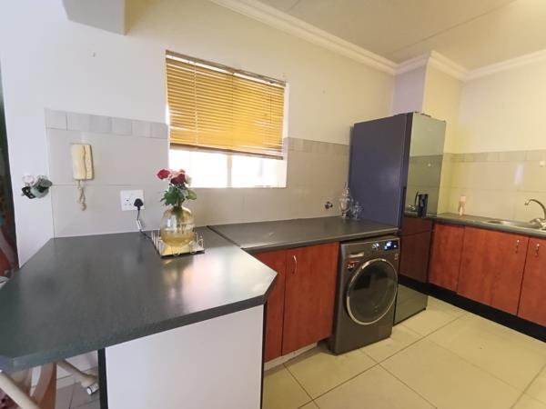 The apartment features a spacious kitchen that flows seamlessly into the open-plan living area, creating a welcoming space for everyday living. Just outside the living area, youll find a private patio complete with a built-in braai perfect for relaxing or entertaining.