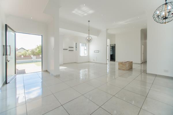 Discover a beautifully designed contemporary home that blends sleek architectural lines with warm, effortless open-plan living. Thoughtfully laid out, the living spaces include two generous lounges, a stylish built-in bar, and a perfectly positioned dining area flowing from a modern, well-equipped kitchen. The separate scullery ensures practicality without compromising the clean aesthetic of the home. This seamless arrangement creates an inviting environment ideal for relaxed family living and effortless entertaining.