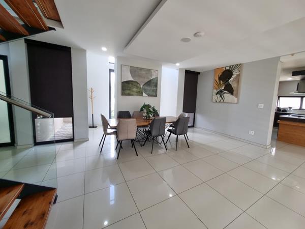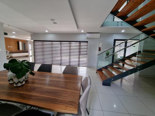 Ultra modern kitchen with Integrated fridge and freezer, induction stove, built in oven and microwave, display cabinets and soft closing cupboards. Scullery has space for 3 appliances and leads to the mud room.