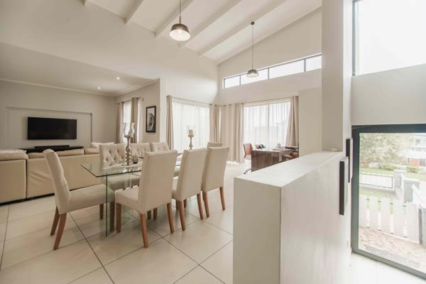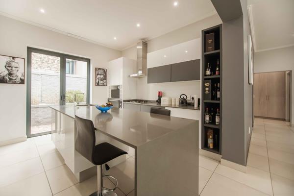 Convenience is key with a separate scullery providing space for three appliances, ensuring functionality without compromising on aesthetics. The garden is designed for easy maintenance, yet offers a serene retreat with a fire pit or boma area, perfect for outdoor gatherings and relaxation.