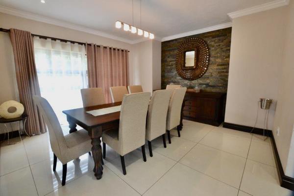 Step inside to find open-plan living areas that flow effortlessly onto a covered patio with a built-in braai ideal for hosting unforgettable gatherings. The beautifully landscaped garden surrounds a sparkling pool, creating a serene outdoor haven perfect for summer entertaining.
