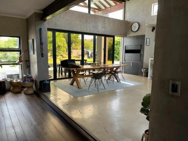 The kitchen, lounge, dining room, bar, patio, pool, braai, lapa and trampoline all form part of a large area where everybody can be together on those fun summer days.