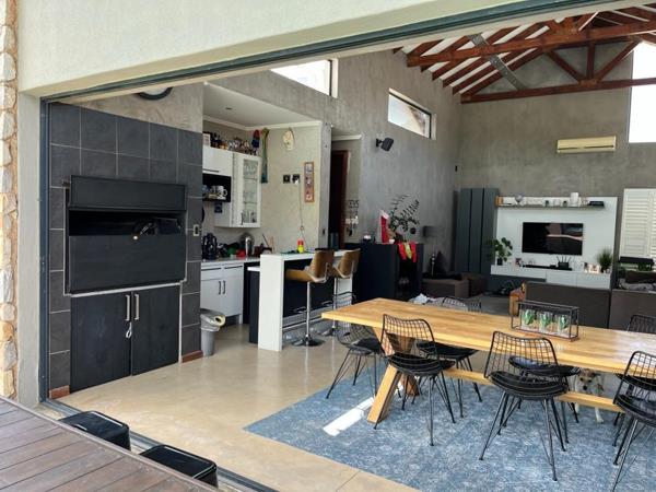 The kitchen, lounge, dining room, bar, patio, pool, braai, lapa and trampoline all form part of a large area where everybody can be together on those fun summer days.
