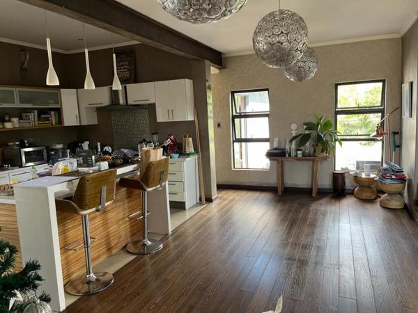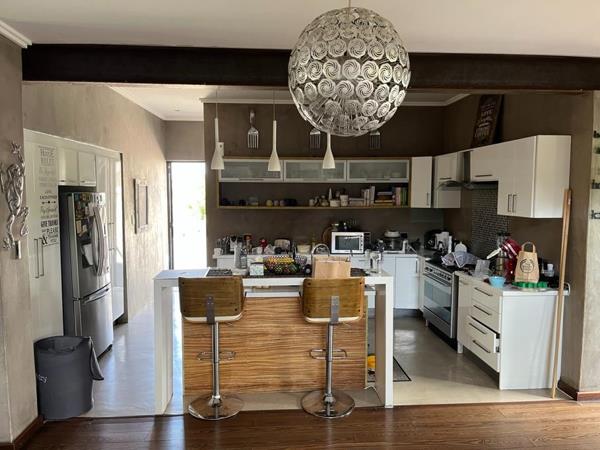 The kitchen, lounge, dining room, bar, patio, pool, braai, lapa and trampoline all form part of a large area where everybody can be together on those fun summer days.
