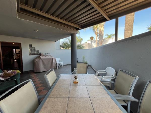 This property offers a seamless blend of style and functionality with a double garage, double carport, and a low-maintenance garden. Enjoy relaxed family living on the front patio, or in the braai room on a rainy day, or next to the sparkling pool with cascading waterfall, or watch movies in the versatile pajama lounge. The built-in braai doubles as a bar - perfect for hosting friends and family year-round.