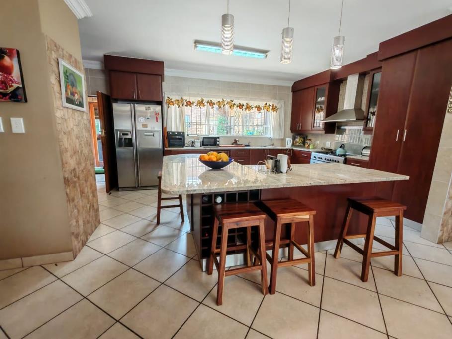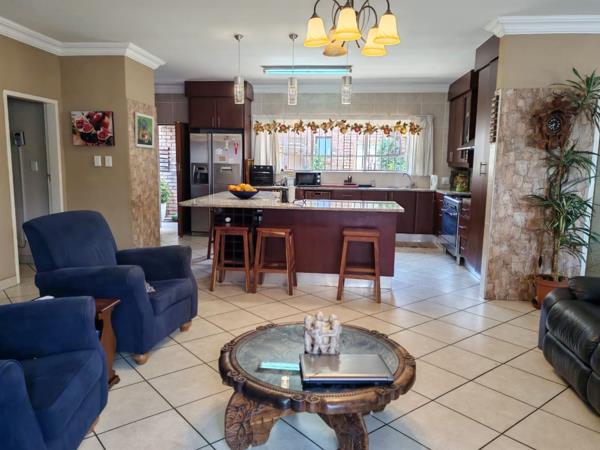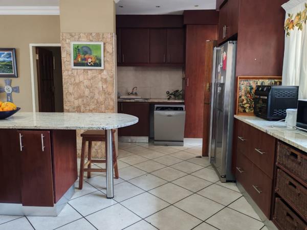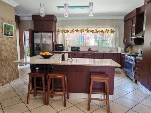 Four bedrooms with built in cupboards, main bedroom en-suit. Two full bathrooms. This home offers inverter and solar system, wrap around garden, pet friendly. Double lock up garage. The main feature is the lapa with built in bar, built in braai and pizza oven. Available for 01 January. Call now to book your private viewing.