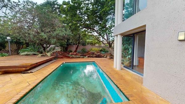 Three large entertainment areas with black slate floors provides entertainment options whilst the pool and entertainment area overlooks a tree filled garden.