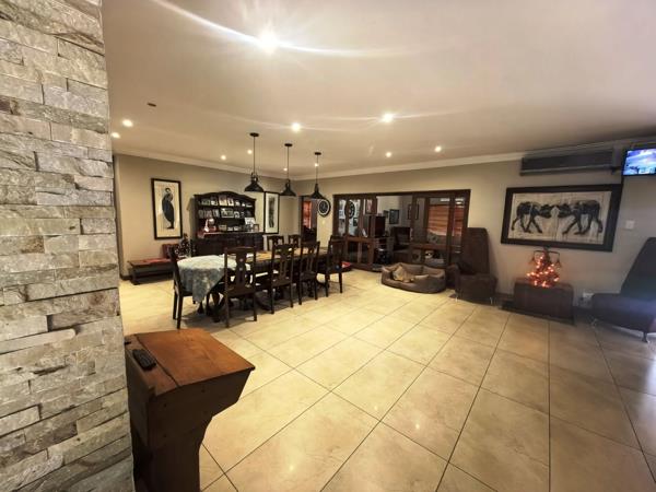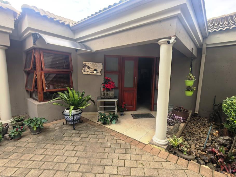This well-located and extended family home offers exceptional versatility, ideally positioned on a busy main road in Eldoraigne, making it suitable for both residential and business use. The main house features four spacious living areas, a private study, and three generously sized bedrooms, each with its own en-suite bathroom, complemented by a guest toilet. The open-plan kitchen is designed for functionality and style, offering ample cupboard space, along with a separate scullery and pantry area. This layout is ideal for a large family or for professionals requiring space to work from home comfortably.