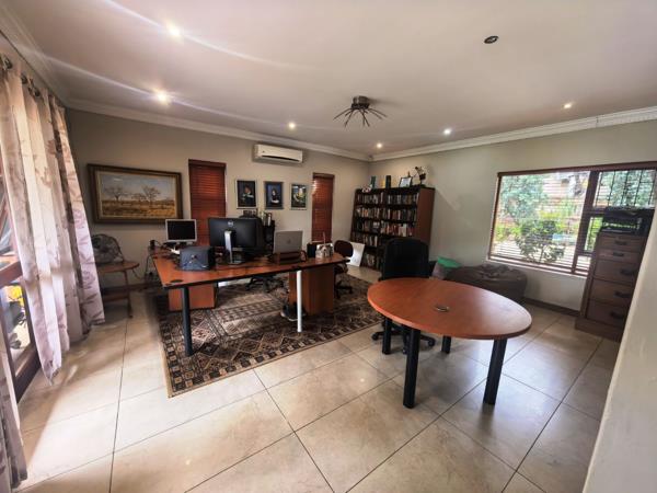 In addition, the property includes a separate two-bedroom unit with its own access, perfectly suited as a flatlet, consultation rooms, or dedicated office space. Outdoor features include a swimming pool, a covered patio with a built-in braai, bar and boma area, as well as a trampoline set within a well-established garden with water features and water system facilities. The home is further enhanced by an extensive solar system, ensuring energy efficiency and reduced running costs. Parking is well catered for with a double garage, double carport, and ample additional parking, completing this outstanding and adaptable property.