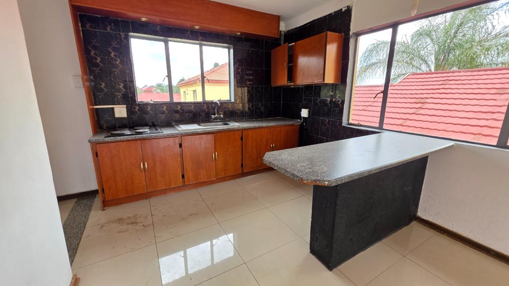 This is a comfortable & maintained upstairs unit which offers 2 spacious bedrooms and 1 bathroom, with a shower, toilet & basin, designed for comfortable living. The open plan lounge flows seamlessly into a fitted kitchen equipped with built in cupboards and an electric stove, creating a functional and inviting space perfect for everyday life and entertaining. One of the bedrooms features built in cupboards, providing generous storage, while fully prepaid electricity and water ensure convenient, stress-free living. The unit is situated upstairs with a dedicated parking space, offering both privacy and security.