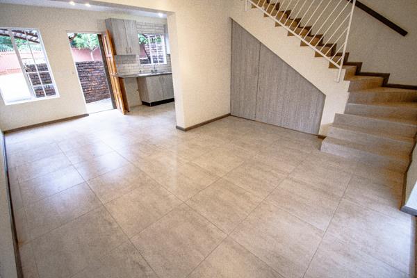 This well-located duplex sits in a sought-after, established complex and offers an inviting, easy-living layout. On entrance, youre welcomed into the newly renovated open-plan living area that seamlessly blends the kitchen with granite tops, gas stove and new cabinetry, dining and loungeTV room space all flowing out to a private, low-maintenance garden with a paved patio. Perfect for relaxed evenings, or a quiet weekend braai.