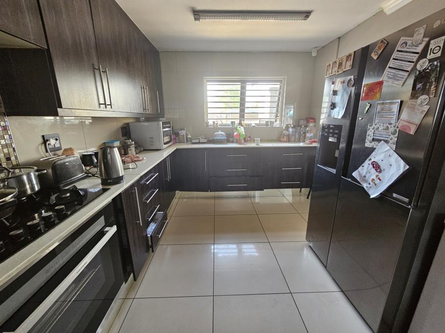 Spacious lounge. Open plan dining area next to a modern kitchen with plenty of cupboard space, overlooking the sparkling pool. There is a garage which has been converted into an another room. Additional to this home is a covered carpot and ample parking space in the yard for extra cars.