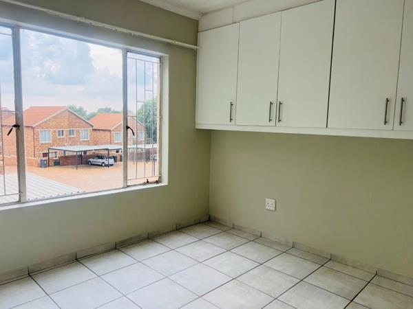 The duet is situated in a secure Heuwelsig Estate and offers 2 bedrooms, 1 and half bathrooms, modern kitchen and a TV room.