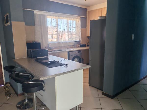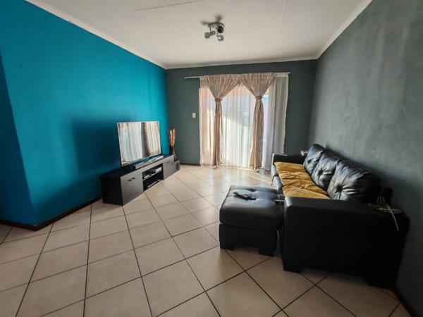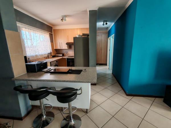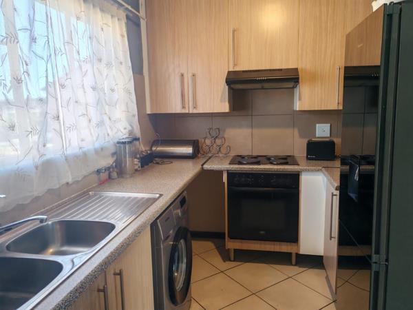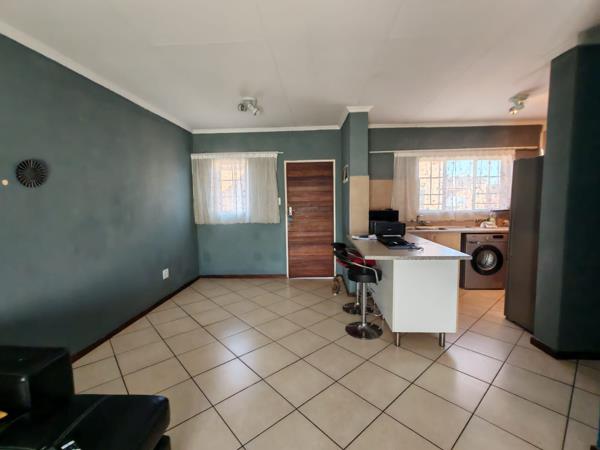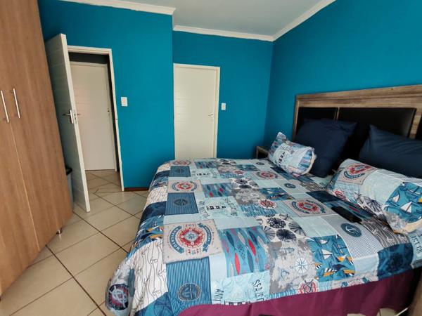 Situated in a security estate, this unit offers open plan dinning room, and lounge. Covered patio with sunset views. Kitchen offers built in cupboards, space for two appliances. Two bedrooms with built in cupboards. Two bathrooms.