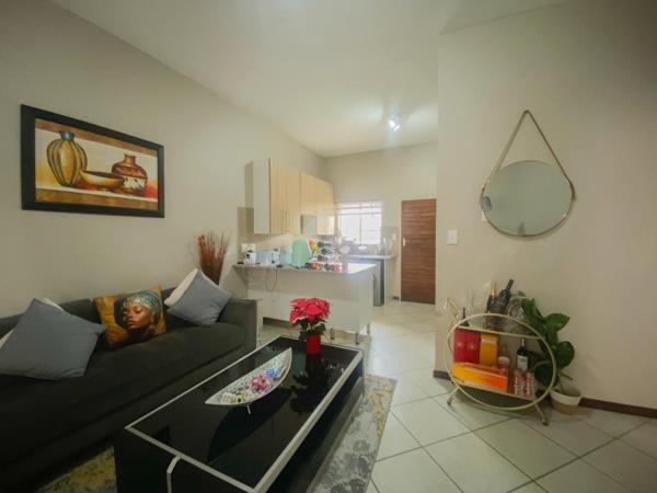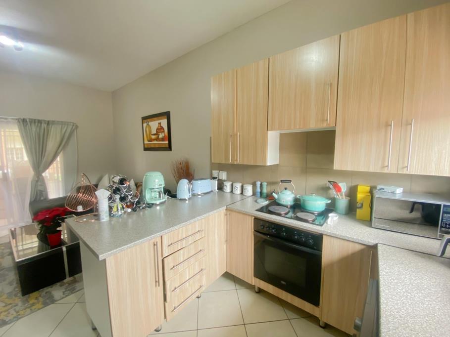 The open-plan kitchen flows seamlessly into the living area, creating a welcoming space ideal for everyday living and entertaining. The kitchen offers sufficient cupboard space and is designed for practical use.