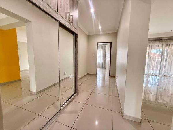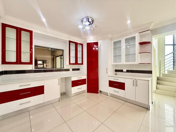 Upstairs offers comfortable family living with a pyjama lounge and generously sized bedrooms, all with ample cupboard space. The second bedroom features an en-suite bathroom with a built-in vanity, while the third and fourth bedrooms are connected via a shared bathroom. The main bedroom is a luxurious retreat, offering an open-plan walk-in closet, a full en-suite bathroom, and a private balcony with beautiful views of the estate and garden.