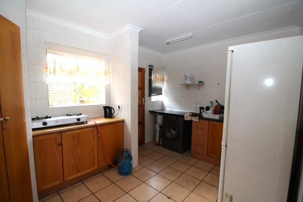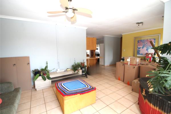 The spacious open-plan living and dining area leads to a well-designed kitchen with ample cupboard space, a separate scullery, and enough room for all your appliances.
