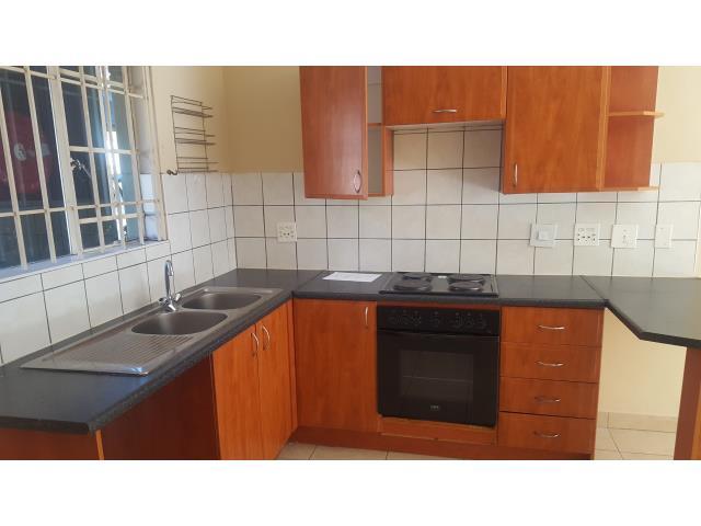 Lovely ground floor 1 bedroom apartment with modern open plan kitchen which opens up to a very spacious lounge area. The kitchen has plenty cupboard space and space for a washing machine. The bedroom is very spacious with a fitted wardrobe. The complex is walking distance Raslouw lifestyle centre and public transport is easily accessible. The complex has access control and 24 hr security. Deposit is the same as rent.