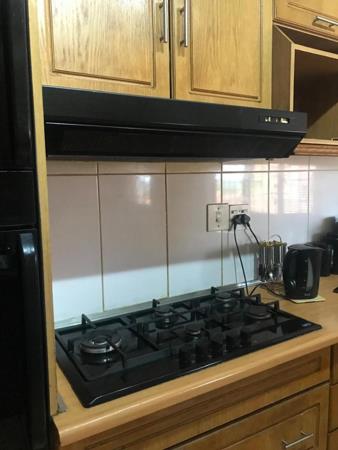 This property offers three generously sized bedrooms, all fitted with built-in cupboards, providing ample storage space. The home features two full bathrooms, including a main en-suite, ensuring comfort and convenience for the whole family.