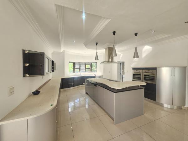 The open-plan layout links a sunlit living room to a dining area and a versatile family or TV roomoffering three generous living areas in total, all finished with tiled floors and elegant curtain rails. The bright, open-plan kitchen serves as the hub of daily life, complete with a separate scullery that leads back outside, keeping the main space sleek and clutter-free.