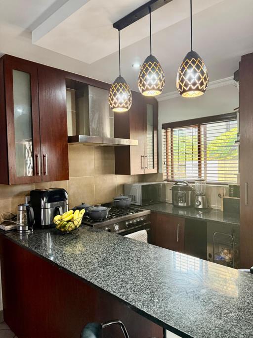 The property offers three spacious bedrooms, each fitted with air conditioning for yearround comfort. Two modern bathrooms serve the household, designed with practicality and style in mind. A private garden provides outdoor space for relaxation, play, or weekend braais, adding to the home&rsquos appeal.