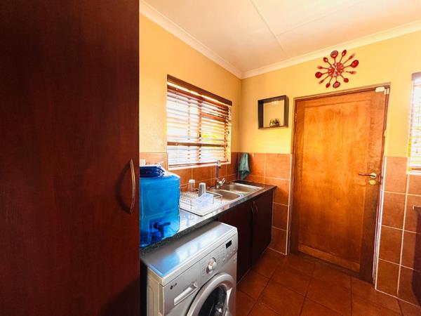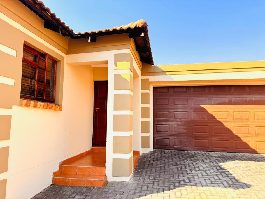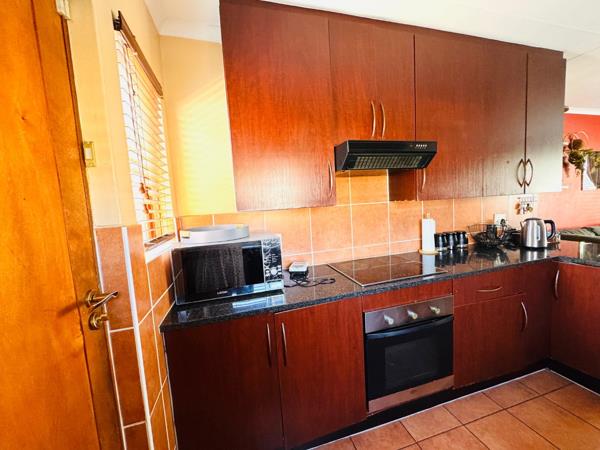 The property features a private garden, ideal for outdoor relaxation or entertaining. Additional features include a double garage and prepaid electricity. The estate offers a safe and quiet environment, conveniently situated close to main routes, schools, and shopping centres.