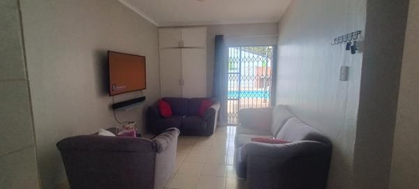 Open plan living area to the Kitchen with modern build in cupboards and granite tops finishes, stove and oven.
